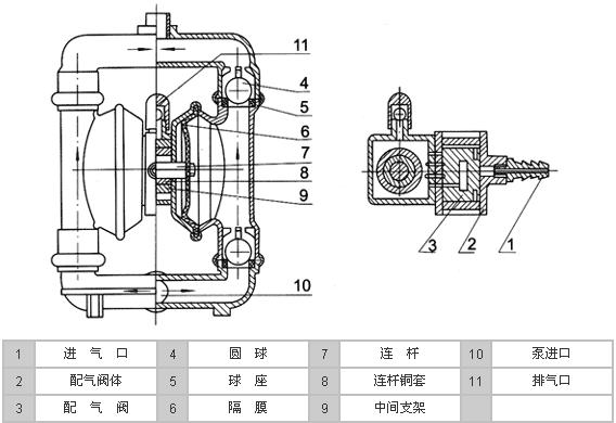 不銹鋼氣動(dòng)隔膜泵是為目前國內(nèi)最新穎的一種泵類,結(jié)構(gòu)簡(jiǎn)單、拆修方便、送液穩(wěn)定、振動(dòng)小、噪聲低、自吸能力強(qiáng)、輸送液體粘度高,具有自吸泵、潛水泵、屏蔽泵、泥漿泵和雜質(zhì)泵等輸送機(jī)械的許多優(yōu)點(diǎn)。采用壓縮空氣為動(dòng)力源,對(duì)于各種腐蝕性液體,帶顆粒的液體,高粘度、易揮發(fā)、易燃、劇毒的液體,不易流動(dòng)的液體均能予以抽光吸盡。其性能參數(shù)與聯(lián)邦德國的WLLDENPVMPS、美國的MARIOWPUMPS相近。已被國內(nèi)數(shù)萬家石油、化工、食品、醫(yī)藥、電子、陶瓷、紡織、釀造、造紙系統(tǒng)單位采用,安置在各種特殊場(chǎng)合,用來抽送種常規(guī)泵不能抽吸的介質(zhì),均取得了滿意的效果。